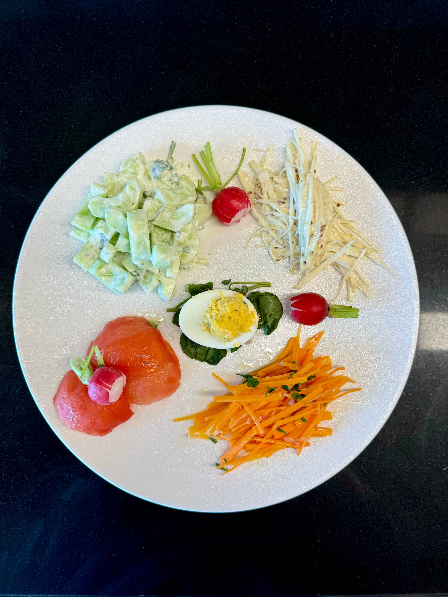 CUCUMBER: Peeled & sliced, mixed with a tangy mint cream sauce (cannot claim this one as a personal favorite…)
